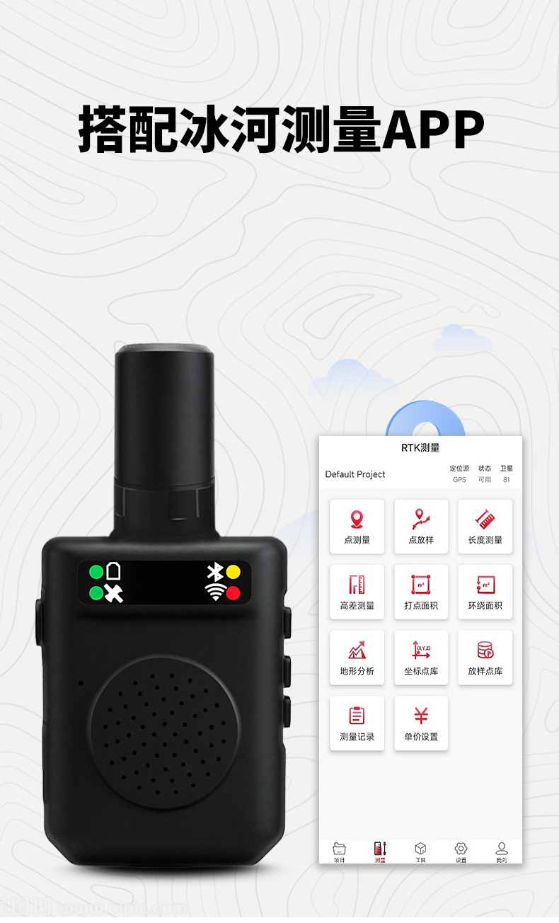 定位精度高,只依靠北斗PPP信号就可以达到5-10厘米,有网络差分支持的时候可以达到1-2厘米。 简单易用 ,不论是标记出水桩,还是测量长度、面积、高差,分析地形,几分钟就能学会。