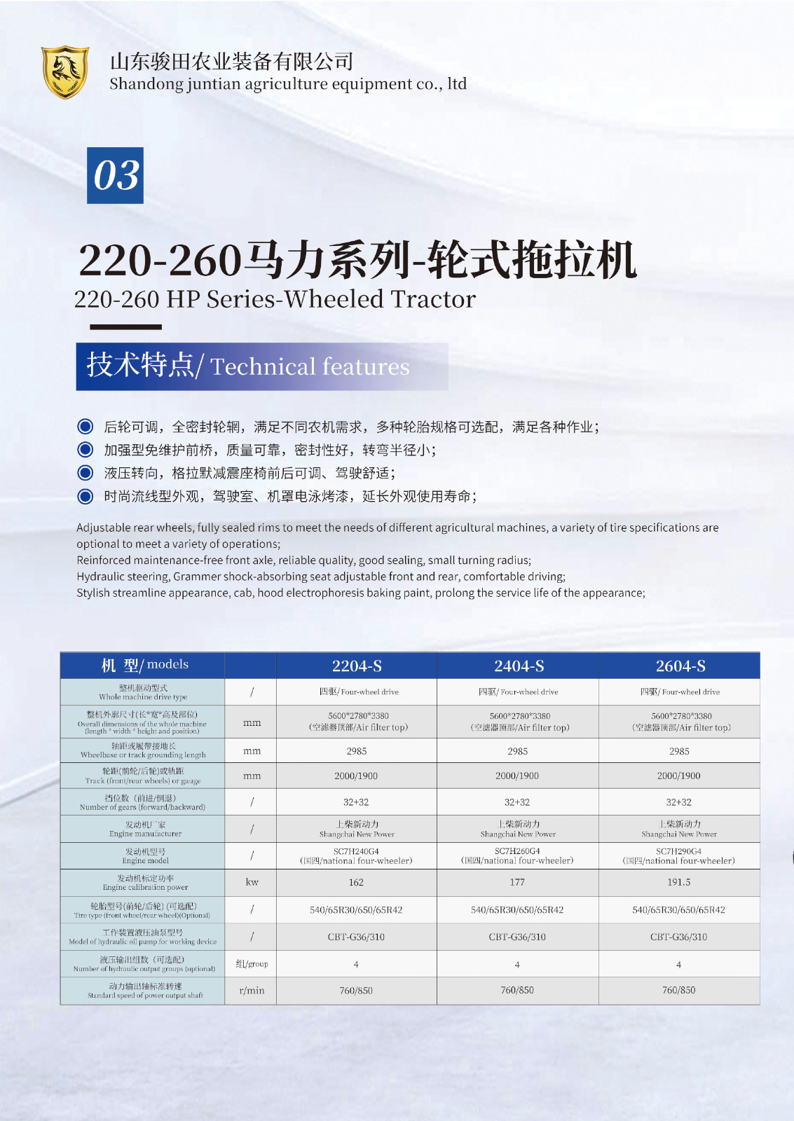 我对骏田2604-S轮式拖拉机感兴趣,请让厂家联系我