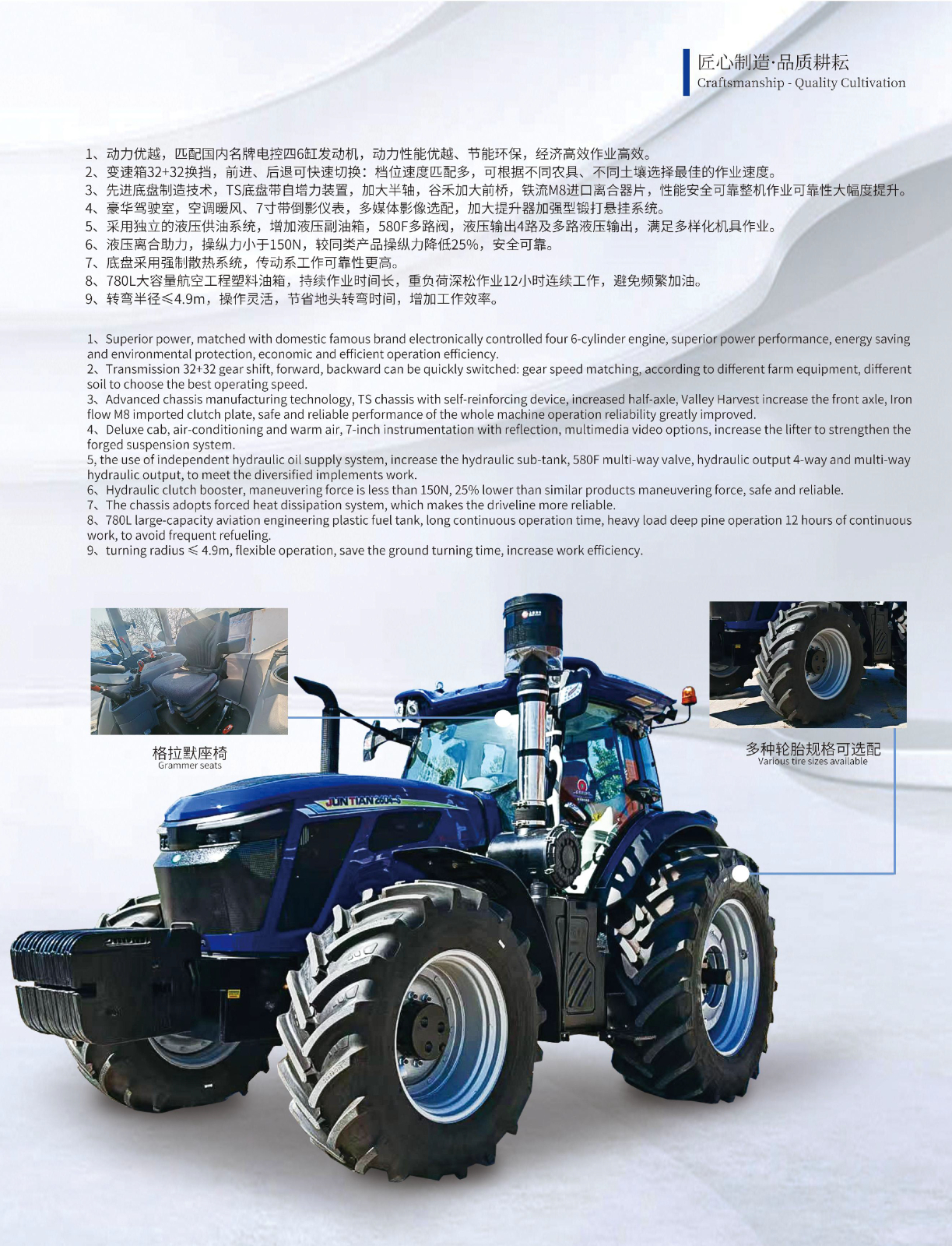 动力优越,匹配国内名牌电控四6缸发动机,动力性能优越、节能环保,经济高效、作业高效。