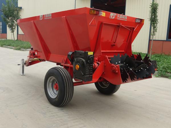 我公司针对撒肥用户对中小型拖拉机配套的湿粪撒粪机的广泛需求,自主研发设计了此款小型纯机械式湿粪撒粪机。该撒粪机由拖拉机后动力输出提供动力,采用后绞龙螺旋结构对粪肥进行抛洒作业,螺旋高速旋转,肥料抛洒效果均匀、细碎,工作效率高,大力节省人工撒肥成本。