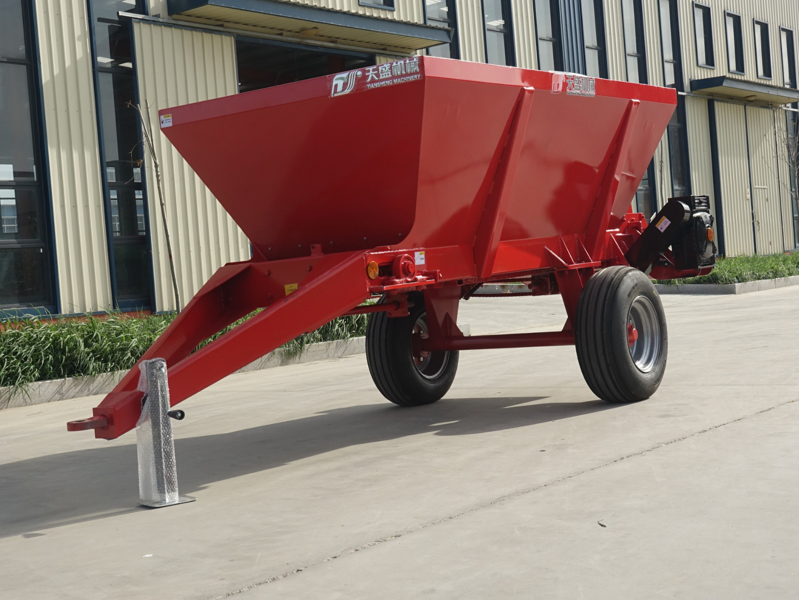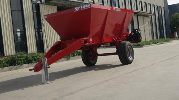 我公司针对撒肥机用户对中小型拖拉机配套的湿粪撒肥机的广泛需求,自主研发了此款小型纯机械式湿粪撒粪机,该撒肥机由拖拉机后动力输出提供动力,采用后绞龙螺旋结构对粪肥进行抛撒作业,螺旋高速旋转,进行抛撒。