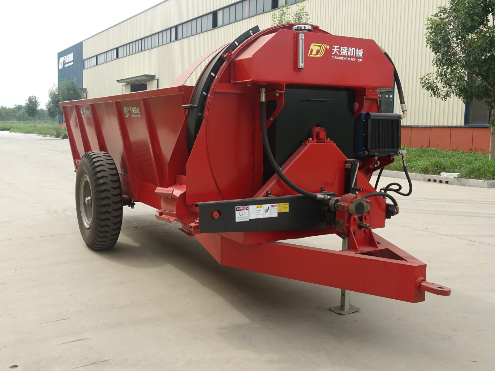 这是一款针对行驶方向右侧进行施肥的有机肥撒肥机,对行驶方向右侧的植株进行施肥。在完成肥料从料仓内导出的同时,对肥料进行搅拌与破碎,使肥料更均匀、更细碎,撒播距离可调,肥料传输使用高度矿用圆环链,更耐用。自带液压系统,只需要拖拉机提供540转/分的后输出动力,可以完全不使用拖拉机的液压系统。