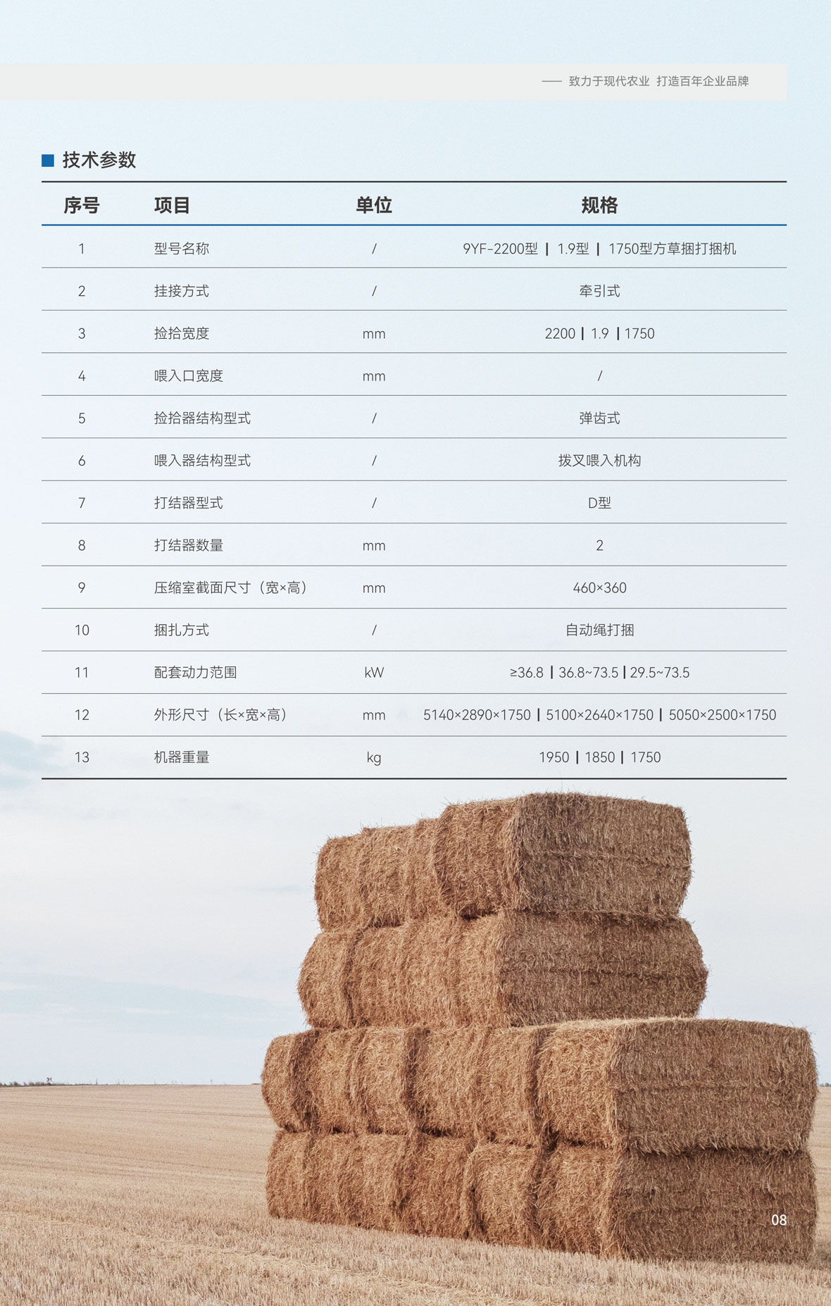 主要应用于对小麦秸秆、水稻秸秆、棉花秸秆、玉米秸秆、各类牧草进行收获打捆的机械。能有效提高秸秆收获的速度和效率,降低收获成本,减轻"三夏"三秋"季节,农民为了抢收抢种的压力。