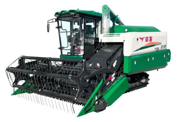 常发D10是常发农装精心设计研发的一款全喂入履带式联合收割机。具有马力大、效率高、能够原地转向、舒适性高、喂入量大、脱粒干净、低损失等产品特点,同时能够兼收油菜、大豆、玉米籽粒等作物,是田间收获作业的理想机型。