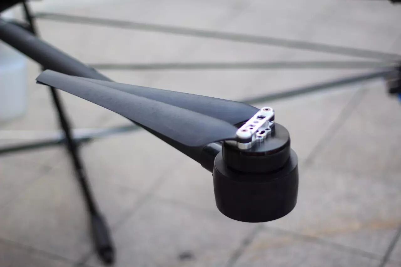 机臂采用40mm进口碳管,强度极高,连接件采用钛合金材料;起落架采用镀钛不锈钢;电机采取悬空方式安装另加尼龙保护罩,最大限度保护了电机安全。